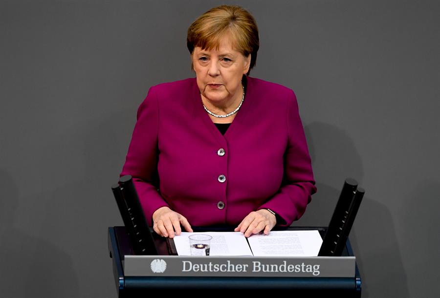 “Alemania asumirá la presidencia del Consejo de la UE el próximo 1 de julio. Nuestro objetivo es que Europa emerja más fuerte de la pandemia y de la crisis del coronavirus. Y desempeñaremos nuestra parte del papel”, dice la canciller de la primera potencia económica de la UE en una grabación.