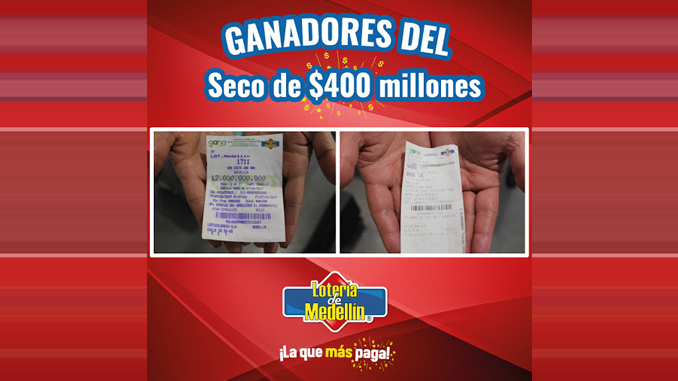 El sorteo también dejó un feliz millonario con el seco de $400 millones en la ciudad de Cali con el número 9477 de la serie 024, un seco de $20 millones Medellín y dos más de $10 millones en Cali y Montería.