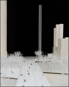 El monumento —una torre de más de 100 metros de altura que está siendo construida frente al