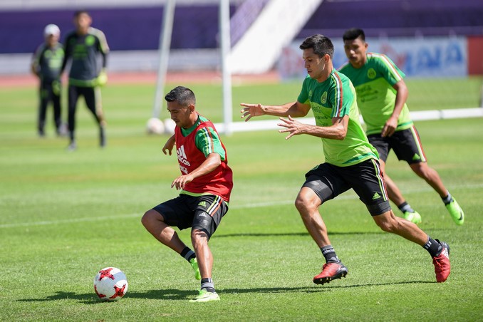 Jugadores de la Selección de fútbol de México durante su entrenamiento el 21 de marzo de 2017, en Cuernavaca. EFE