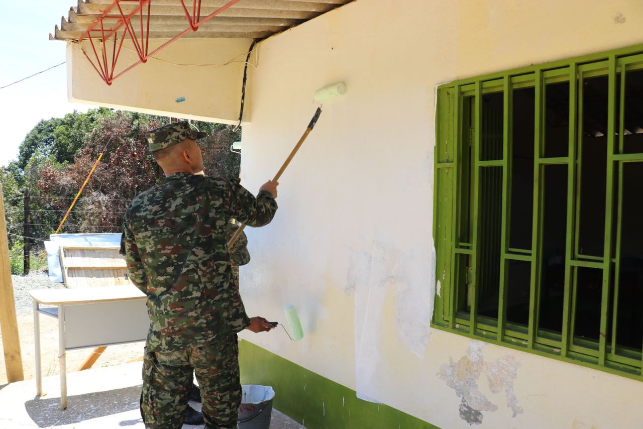 Durante esta última jornada, se pintaron las instalaciones del centro educativo, mejorando las condiciones de estudio para los 33 estudiantes que asisten a esta institución rural y son provenientes de veredas aledañas.