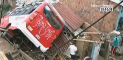 Milagrosamente nadie murió en este accidente. El microbús reverzaba, milagrosamente sin pasajeros, cuando perdió los frenos y fue a dar contra tres viviendas del barrio ‘Carpinelo’ al Nororiente de Medellín.
