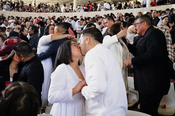 Este miércoles, el Ayuntamiento de Tijuana realizó la tradicional ceremonia de bodas colectivas aprovechando el detalle del día, a la que acudieron más de mil parejas de diversos sectores de la sociedad, entre las que se destacaron cuatro parejas de migrantes, unos que están de paso en la ciudad y otros que llegaron para quedarse.