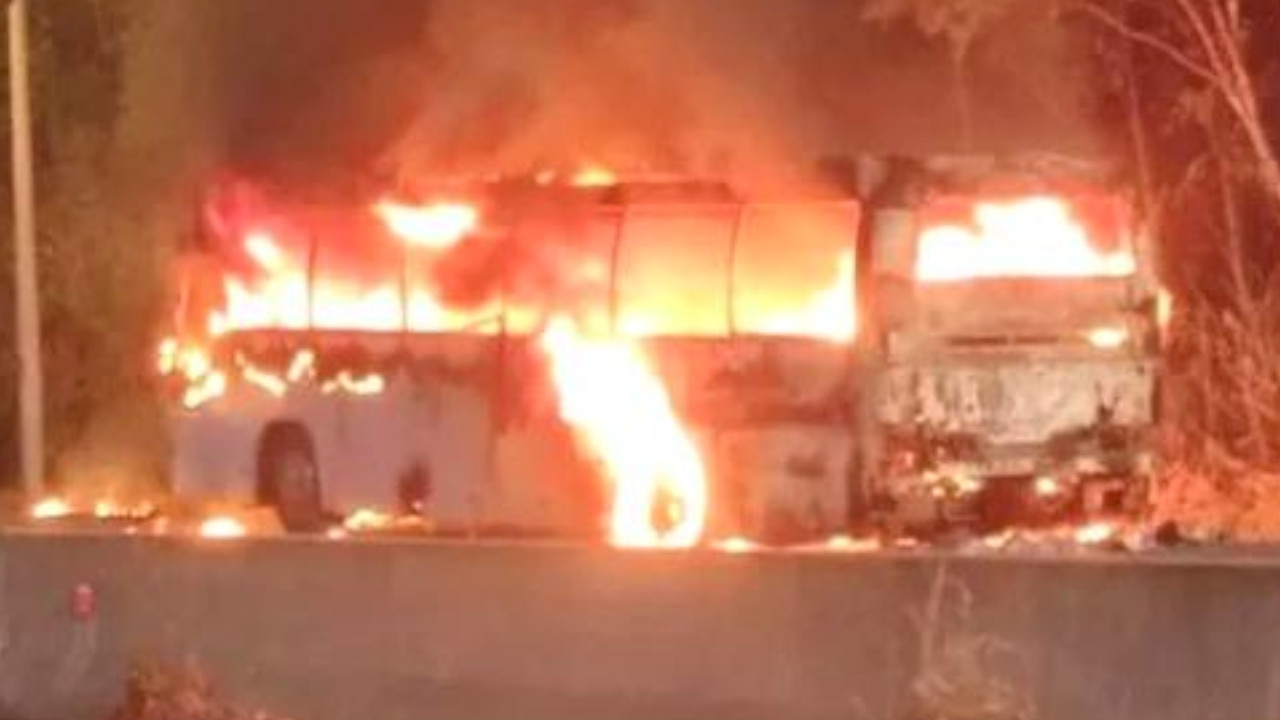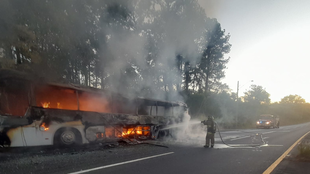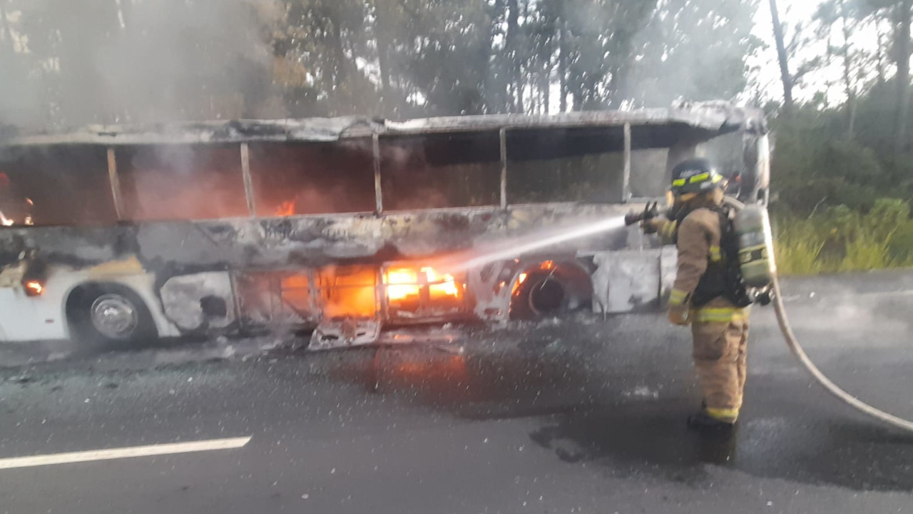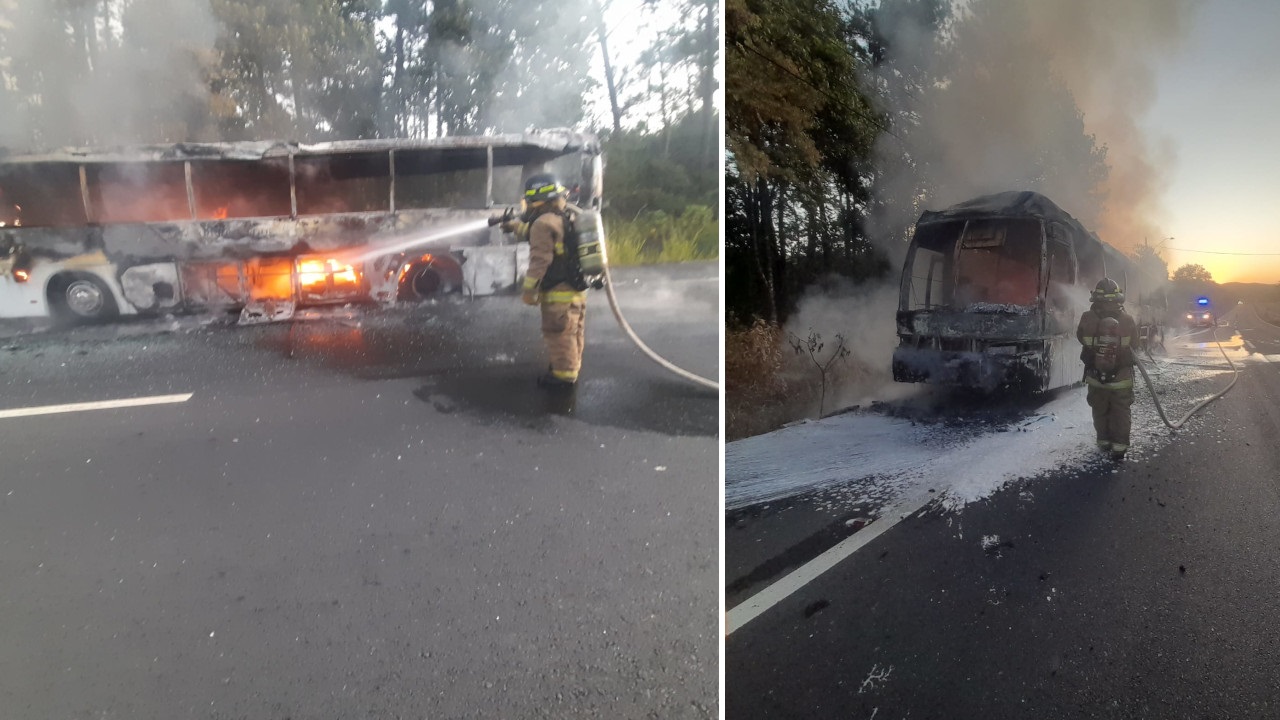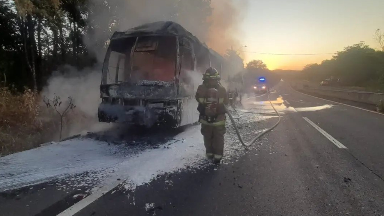 57 migrantes que viajaban en un bus en carreteras panameñas, rumbo a la frontera con Costa Rica, sufrieron un accidente en el que el carro se quemó por completo.
