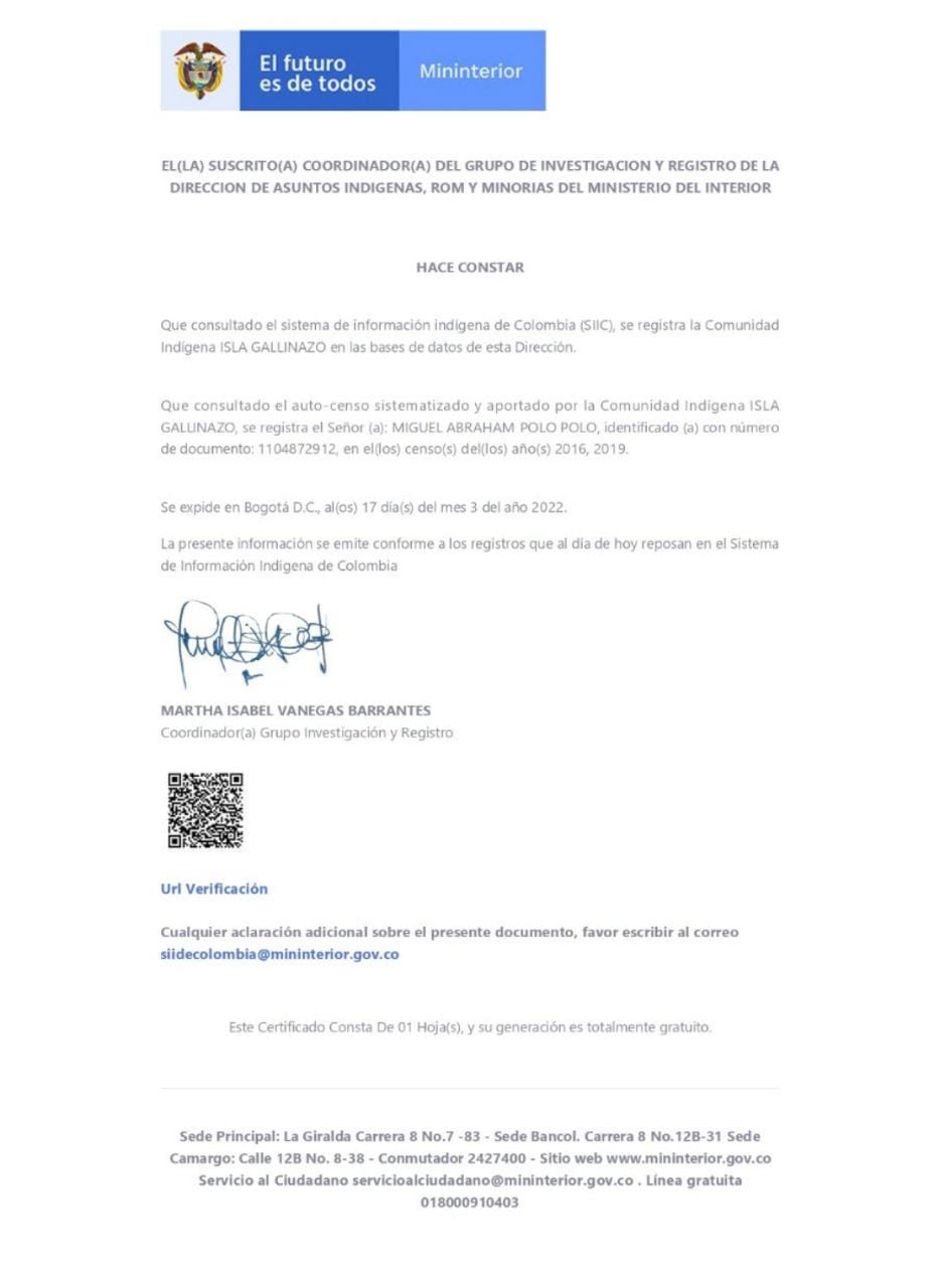 Y es que en 2019, Miguel Polo Polo se registró ante el Ministerio del Interior como una persona indígena, al parecer para ganar una beca. “En consecuencia, este señor no cumple con los requisitos para hacerse elegir por la cámara afro”, indicó Alí Bantú, un abogado experto en litigio estratégico.