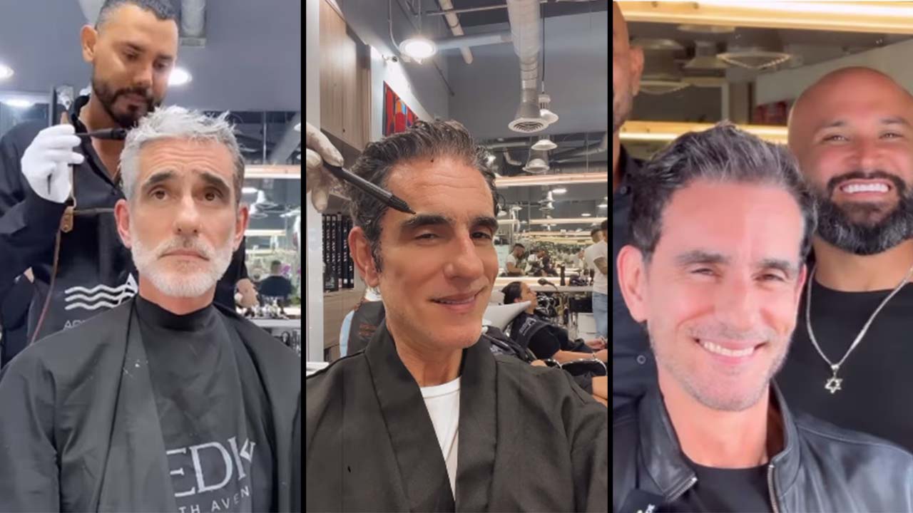 Miguel Varoni en otro tratamiento más después del corporal y es el de color de cejas además de cabello.