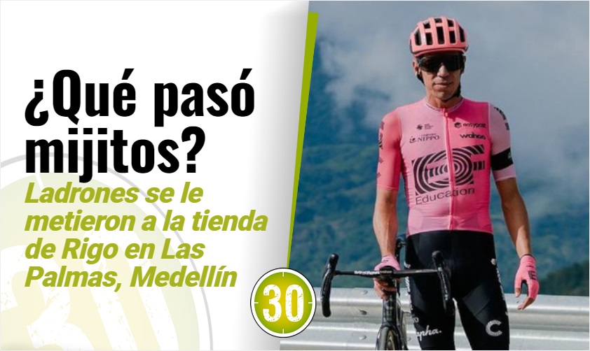 Resumen: Rigo Urán sufre robo en su tienda de Medellín: Ladrones se llevan computadores y dinero en efectivo. El ciclista colombiano Rigo Urán fue víctima de un robo en su tienda ubicada en la avenida Las Palmas de Medellín. Los delincuentes esperaron a que los empleados se retiraran para ingresar al local y sustraer dos computadores y aproximadamente cinco millones de pesos en efectivo. Las autoridades investigan el hecho y aún no se ha confirmado si se llevaron otros objetos de valor. A pesar del robo, Rigo Urán mantiene la calma y aún no se ha pronunciado sobre el atraco.