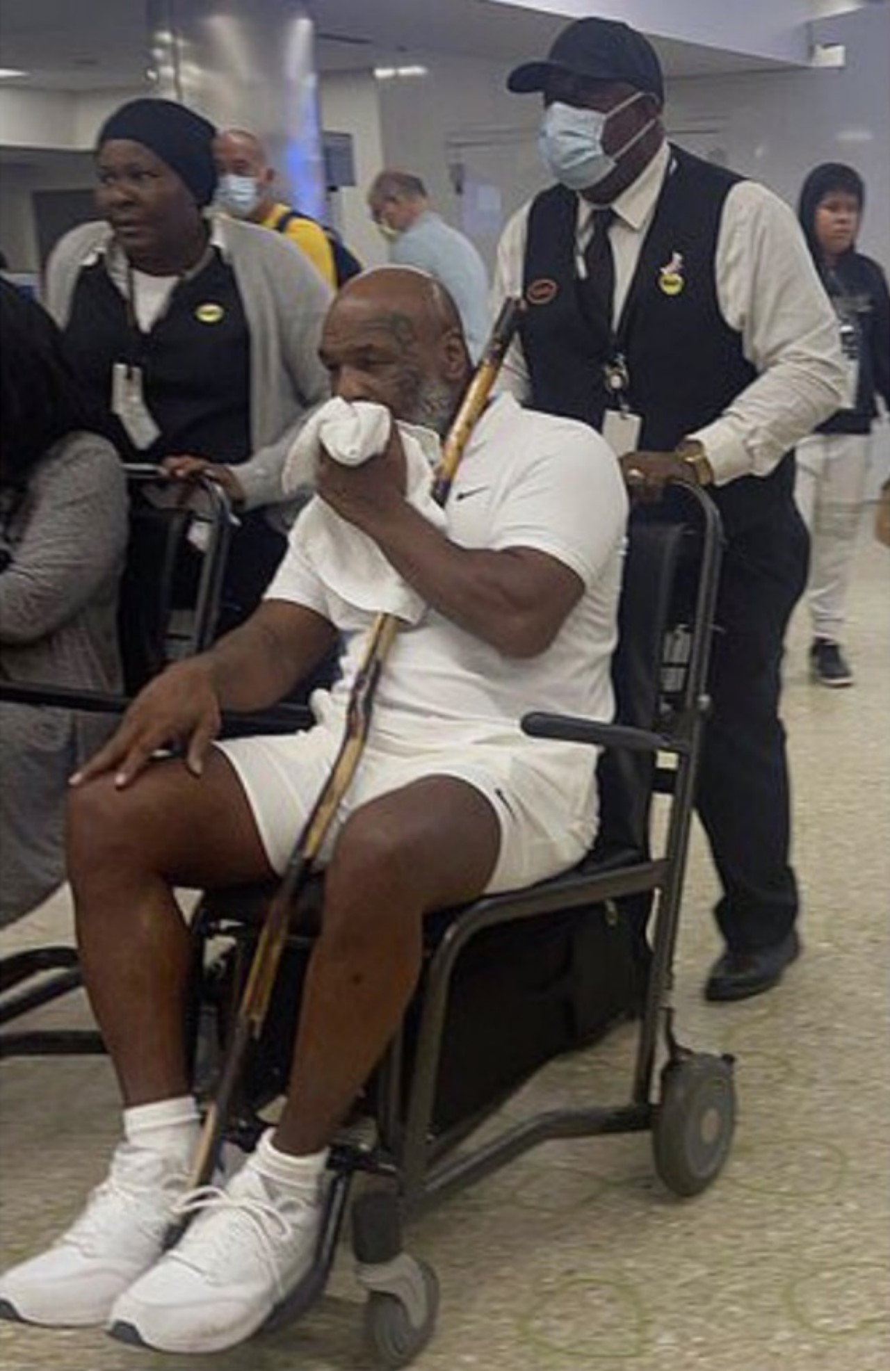Mike Tyson fue visto el martes en silla de ruedas por el Aeropuerto Internacional de Miami, en Estados Unidos.