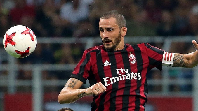 El jugador del Ac Milán Leonardo Bonucci en una acción durante la ronda eliminatoria de la Liga Europea UEFA, en el partido que enfrentó al Ac Milán contra el KF Shkendija, en el Estadio Giuseppe Meazza de Milán (Italia). EFE/Archivo
