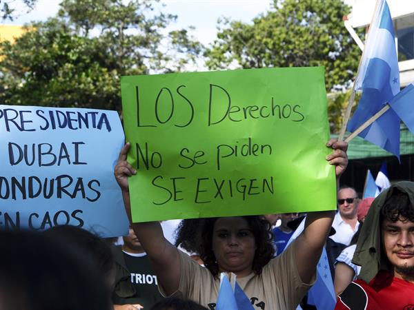 "Socialismo equivale a emigrar", "Fuera la vieja clase política", "Somos pueblo y somos mayoría" y "Honduras somos todos y estamos unidos", se leía en algunas de las pancartas.