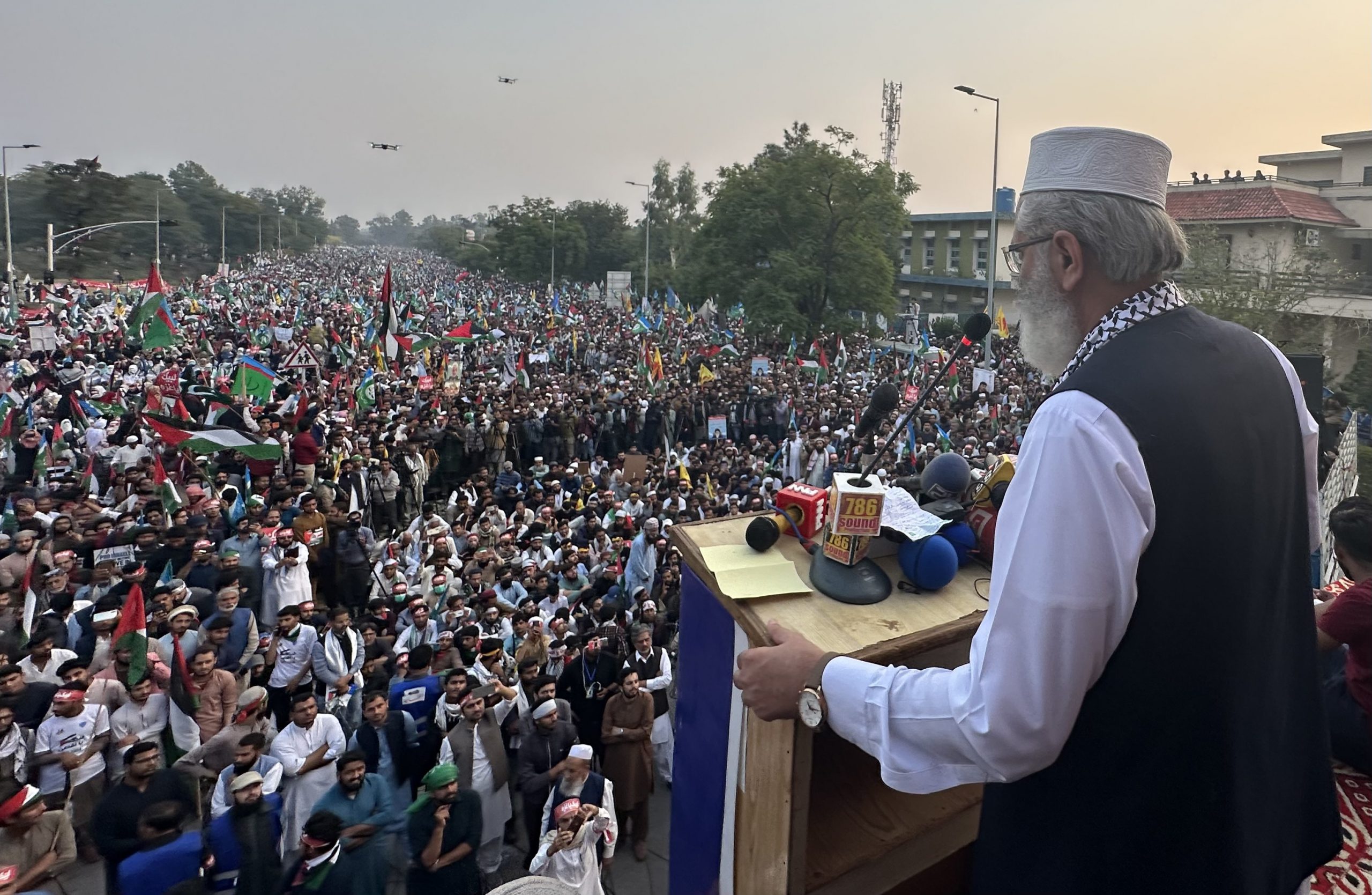 "Millones de paquistaníes están listos para emprender la yihad por el pueblo de Gaza", dijo el jefe de JI, Siraj ul Haq, en un discurso en la capital paquistaní.