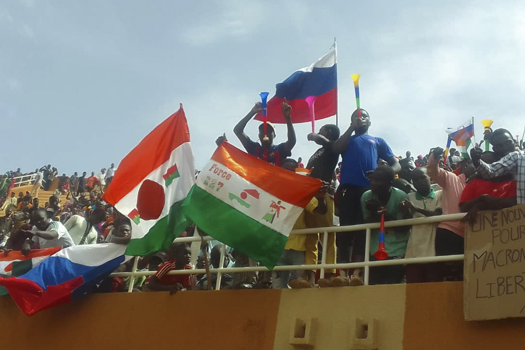 Los manifestantes se reunieron en el estadio Seyni Kounche -el principal del país africano con una capacidad de más de 30.000 asientos-, que estaba completamente lleno, y también en los alrededores del complejo, mientras coreaban lemas de apoyo a la junta golpista, autodenominada Consejo Nacional de Salvaguardia de la Patria (CNSP), según pudo constatar EFE.