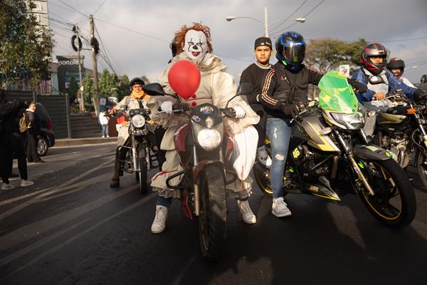 En sus primeros kilómetros de recorrido, los motociclistas son alentados por cientos de guatemaltecos que se aglutinaron en las pasarelas y a las orillas de la carretera para tomar fotografías de los creativos disfraces.