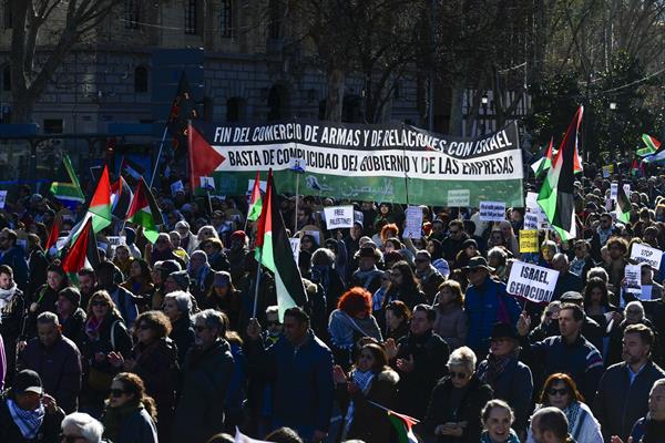 Madrid, 20 ene (EFE).- Miles de personas se manifestaron este domingo en Madrid, como en decenas de ciudades españolas, para pedir el “fin del genocidio contra el pueblo palestino”, a la que asistieron representantes de varios partidos de izquierda. La protesta fue convocada por la Red Solidaria contra la Ocupación de Palestina, “por el fin […]