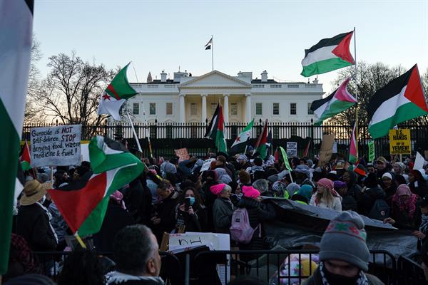 Washington, 13 ene (EFE).- Miles de personas, entre ellas familiares de víctimas de los bombardeos en la Franja de Gaza, se tomaron este sábado las calles de Washington para pedir un alto al fuego en el conflicto y el fin del apoyo estadounidense a Israel.