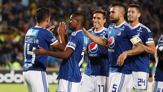 Millonarios goleó por 4-0 al General Díaz paraguayo este miércoles en partido de vuelta de la segunda fase de la Copa Sudamericana y se enfrentará en octavos de final a Independiente Santa Fe, su histórico rival de plaza.