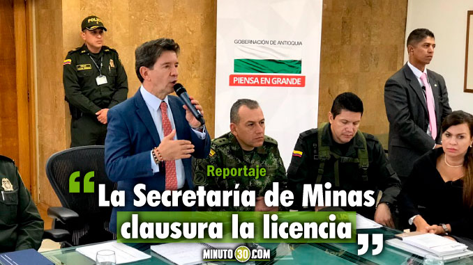 Explicó el mandatario que el cierre de la mina y la clausura de su licencia, obedeció al abandono por parte sus dueños, quienes dejaron la mina y no hicieron cierre técnico, por lo que la administración departamental tomó dicha determinación para evitar una futura catástrofe.