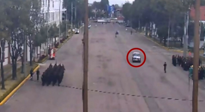 La camioneta conducida por José Aldemar Rojas Rodríguez se observa pasando al lado de varios cadetes en formación justo después de vulnerar la seguridad del lugar, hecho que contradice lo informado en la rueda de prensa posterior al atentado donde las autoridades informaron que el vehículo ingresó a toda velocidad al lugar.
