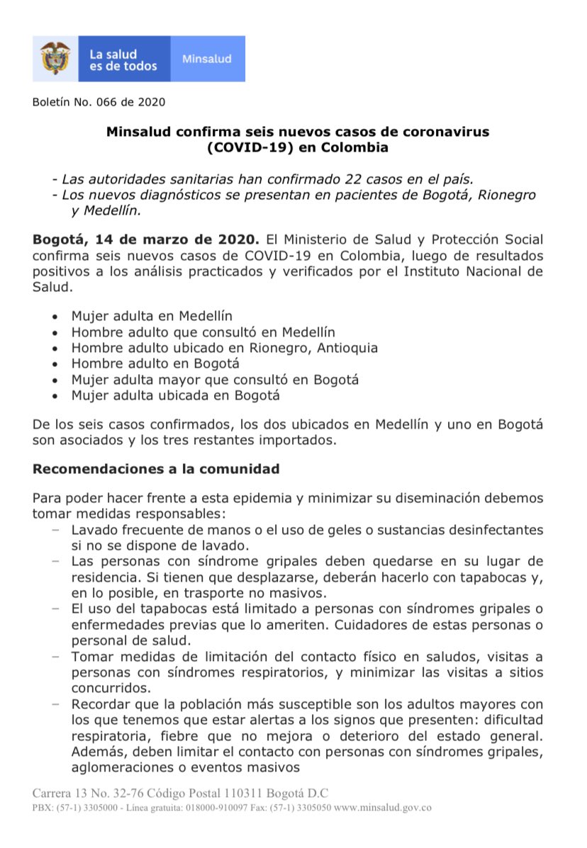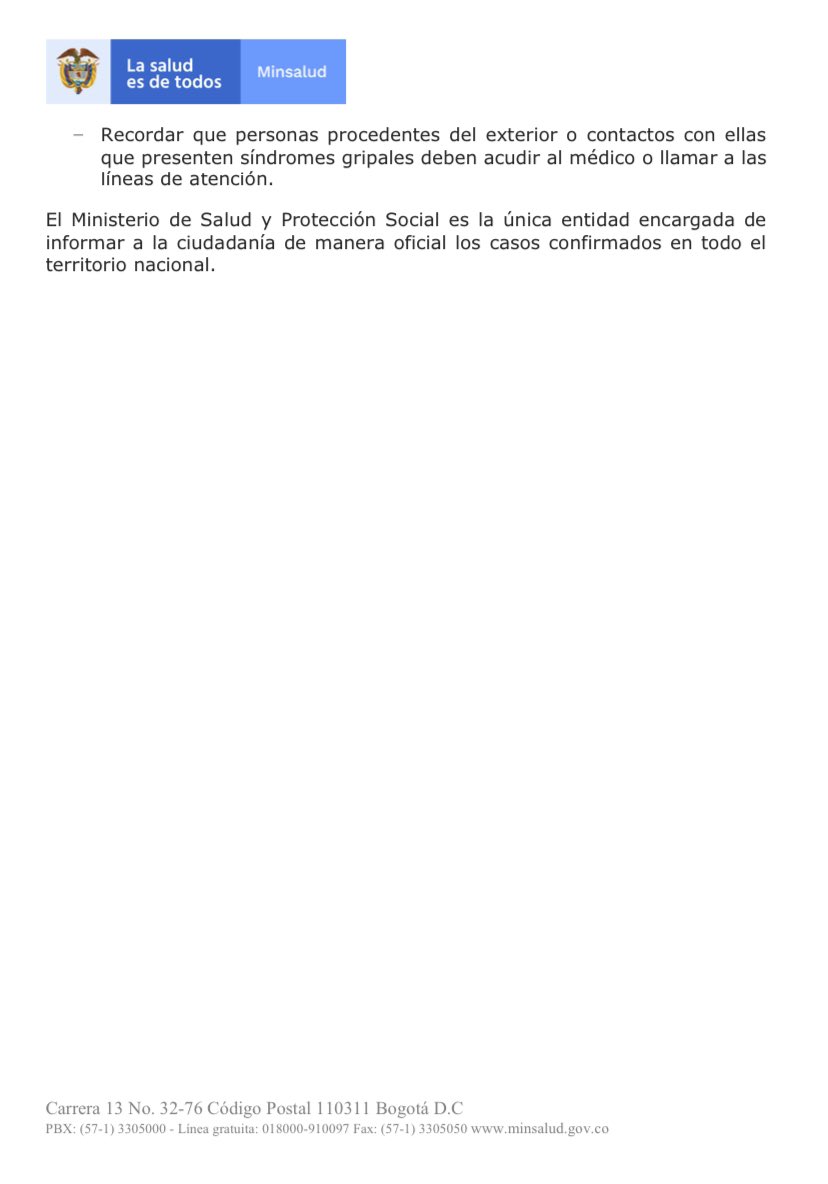 La capital alcanza entonces los 10 casos confirmados de contagio por el Covid-19, Minsalud amplió la info para detallar el estado de los nuevos casos.