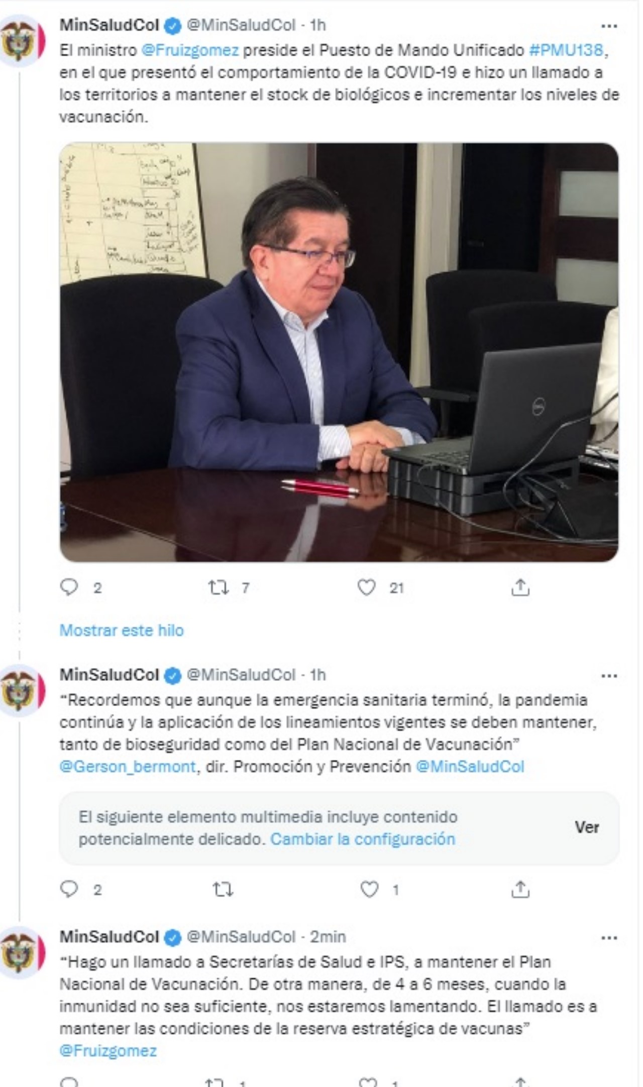 El ministro de Salud y Protección Social, Fernando Ruiz Gómez, realizó un análisis de la situación epidemiológica que vive el país y los avances del Plan Nacional de Vacunación contra el covid-19.