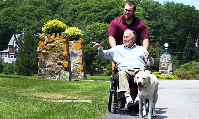 The 41st President accompanied by his two best friends — Jim Baker and Sully — discharging his civic duty and voting today. pic.twitter.com/1sSvkmWMQQ