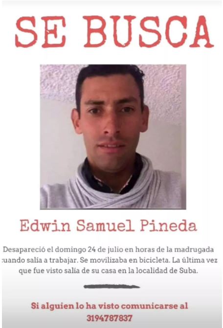 El 29 de julio, su familia confirmó que hallaron a Pineda en Tunja, Boyacá; pero se encuentra un poco delicado en salud.
