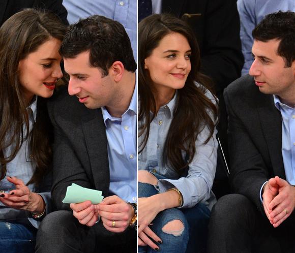 Katie asistió a un encentro de baloncesto acompañada de su agente, Adam Schweitzer, con el que no sólo compartió risas y confidencias al oído, sino misteriosas miradas