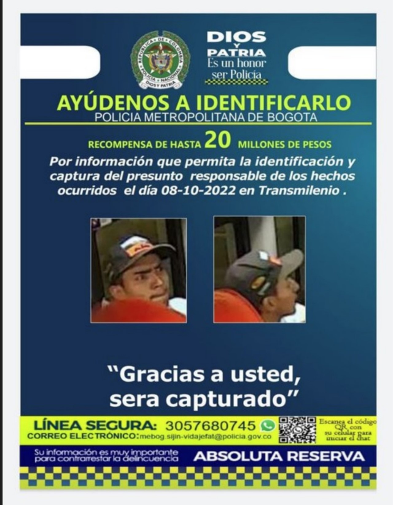 Ofrecen recompensa por hombre que asesinó a un menor después de que lo pisara en TransMilenio