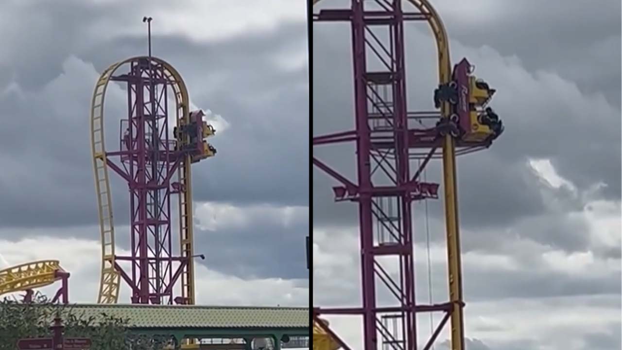 En video quedó registrado el angustiante momento que pasaron personas que fueron a un parque de diversión para vivir un día muy extremo y terminaron viviendo un momento inolvidable, pero no por bueno, pues mientras estaban montados en la montaña rusa, esta se vara a mitad de camino, y justo en la parte más alta, quedando a 20 metros del suelo.
