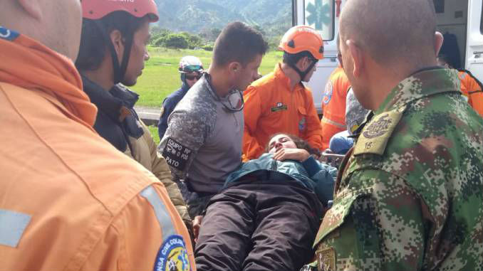 El mayor Luis Fernando Vélez, director de la Defensa Civil departamental, dijo que “ella fue valorada en el sitio por un médico de la Defensa Civil y luego fue trasladada a un centro asistencial en Ibagué. Al parecer tiene lesiones en su cadera y en sus extremidades”.