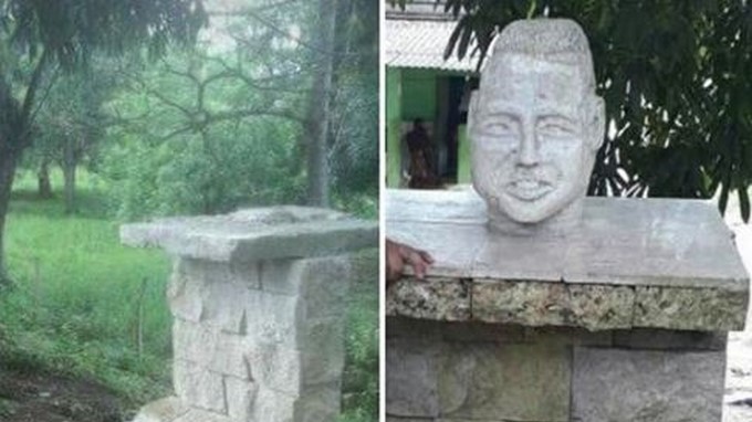 En la foto que publicó uno de sus seguidores, se puede observar la ausencia del busto de su rostro y la placa. Hasta el momento se desconoce el paradero de la escultura.