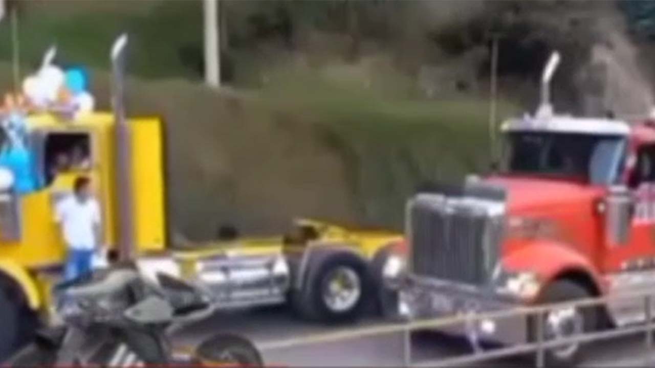 El accidente se dio en plena vía, en medio de una curva cuando una de las tractomulas al parecer quería adelantarse y se sale de su carril, chocando de frente con el hombre que venía manejando la moto y que lamentablemente no llevaba el casco puesto.