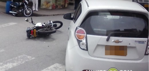 Minuto30.com .- Un choque entre un carro y una moto se registró la mañana de este sábado en el sector de San Germán, noroccidente de Medellín.