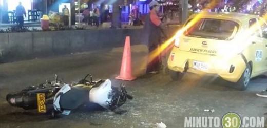 Según Reporte Ciudadano llegado hasta Minuto30.com, el accidente en el que se vieron involucrados un taxi y una moto se registró a las 7 de la noche en el barrio Santa María de Itagüí.