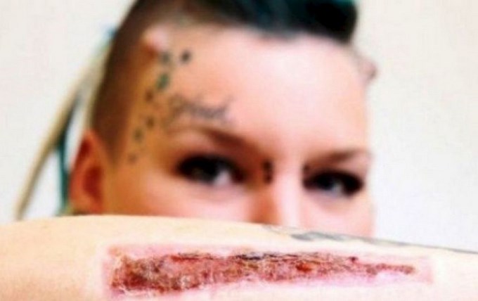 Mujer despechada se arrancó de la piel el tatuaje de su infiel expareja. Fotos