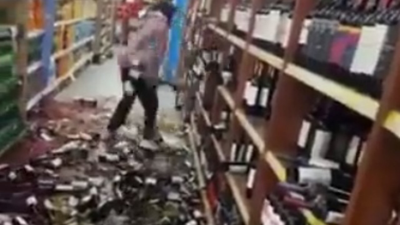 En redes sociales han viralizado un video en el que se observa una mujer tirar al suelo los vinos que estaban en una estantería, al parecer sería una empleada del supermercado que habría sido despedida.