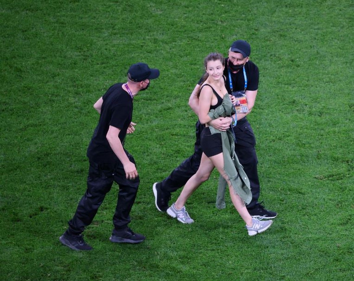 Mujer invadió partido de la Eurocopa para quitarse la ropa