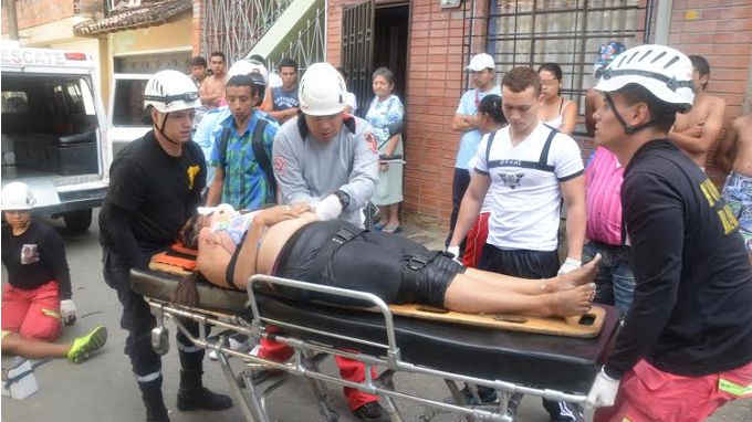 Zulma Mirellis de 44 años sufrió fuertes golpes en su cabeza y hombros, siendo asistida e inmovilizada por Bomberos Barbosa que acudieron junto con guardas de Tránsito para de manera oportuna atender la emergencia.