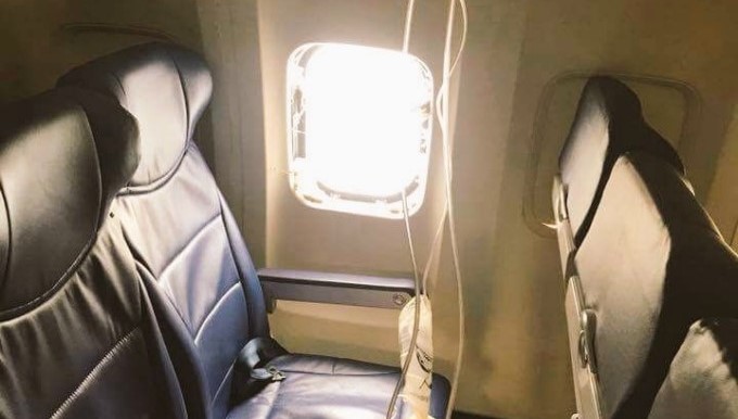Así quedó la ventana luego de que se rompiera en pleno vuelo.