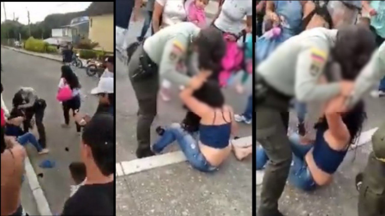 En el video se ve a la ciudadana sentada mientras que tiene a la policía tomada del pelo, aunque la uniformada le pide que le suelte el pelo ella no lo hace. Al parecer la policía también la agarró del cabello.
