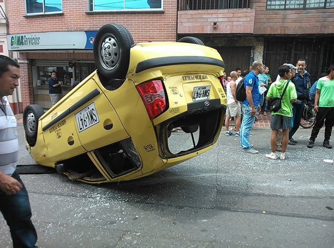 Según denuncia ciudadana, bajaba un taxi por la carrera 38, en el barrio Boston de la capital antioqueña, cuando de manera intempestiva un twingo, conducido por una mujer en aparente estado de ebriedad y con exceso de velocidad, no hizo el pare correspondiente, provocando que el vehículo de servicio público que transportaba en ese momento una familia con una bebé en brazos, se volcara en la mitad de la calle.