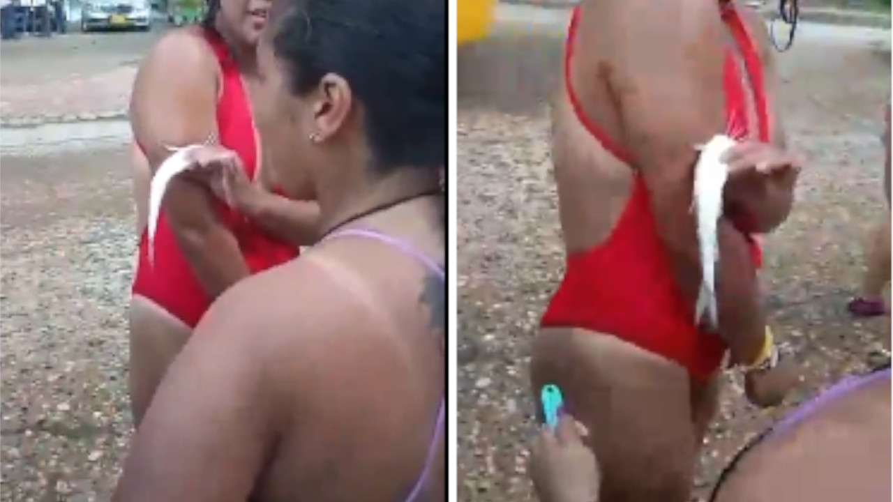 Se pudo conocer que la mujer estaba compartiendo con su familia en vestido de baño en las playas de Cartagena, cuando de repente salió del agua y tenía pegado a su brazo derecho un gran pez.