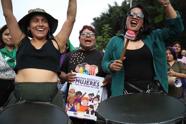 Bajo el lema de ´Hoy marchamos porque no estamos dispuestas a permitir que nos roben más derechos, gritamos en lucha y no pararemos´, recorrieron varias de las principales avenidas del centro histórico de la capital peruana.