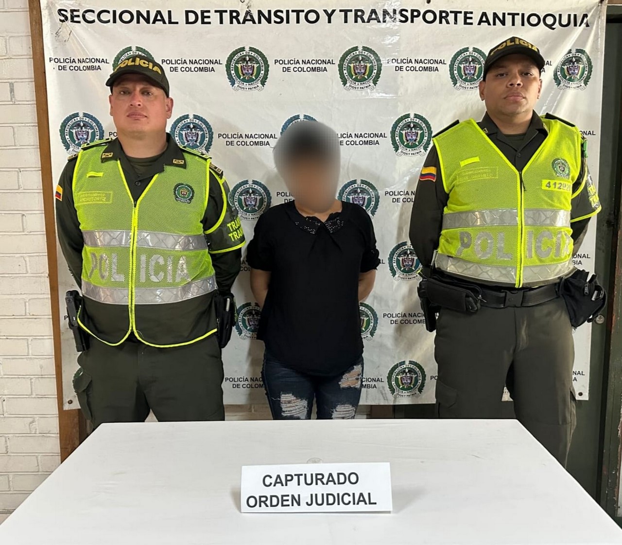 El cuadrante vial Río Claro en Puerto Triunfo, fue capturada una mujer de 36 años, requerido mediante orden de captura por el delito de concierto para delinquir agravado.