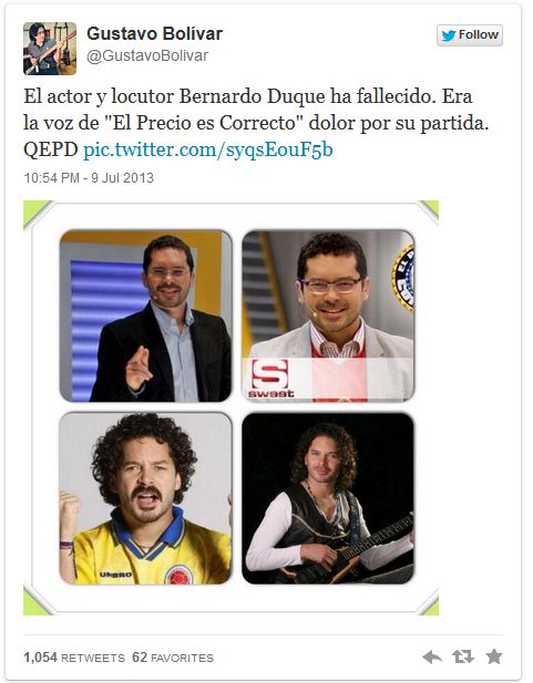 Bernardo Duque, la bonita voz que ‘cantaba’ los premios por los que concursaban los asistentes a “El precio Es correcto” que actualmente emite el canal Caracol y que es presentado por Iván Lalinde murió la noche de este martes.
