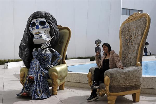 Entre las figuras destaca una escultura de José Guadalupe Posada, el caricaturista mexicano que creó el personaje de la Catrina, la calavera viviente.