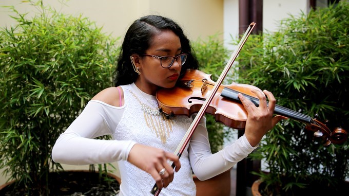 Ahora, más de una década después ha podido acceder a estudiar Música en el Conservatorio de la Universidad Nacional, donde perfecciona sus conocimientos de violín.