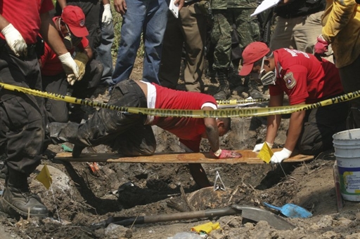 La fosa fue descubierta el martes después de una llamada anónima que reportaba a dos individuos muertos en un paraje. Cuando la policía llegó, encontró sobre uno de ellos una cartulina con un mensaje que advertía que en las inmediaciones había un enterramiento clandestino.