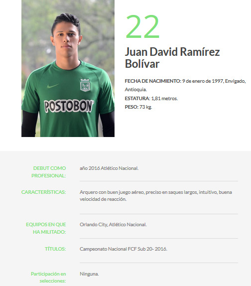 Información Juan David Ramírez, suministrada por Atlético Nacional