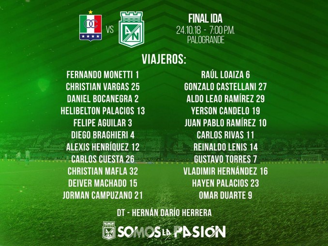 Minuto30.com- Atlético Nacional dio a conocer el listado de jugadores que viajarán este martes hacia la ciudad Manizales, donde el equipo se radicará hasta el próximo domingo.